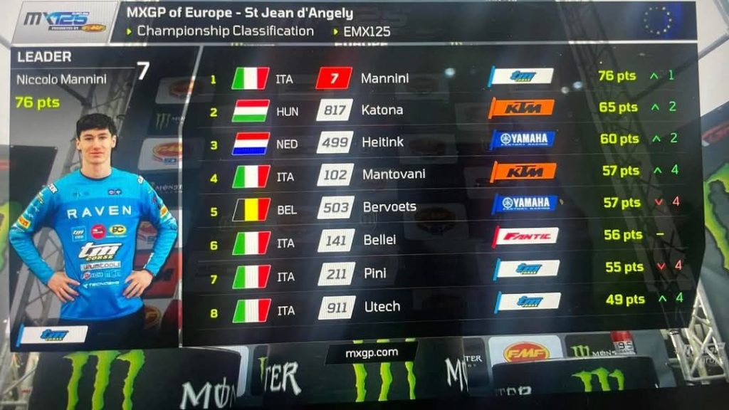 Niccolo Mannini: “One of the most beautiful weekend of my albeit short career. On Saturday I struggled to interpret the track but then the rain fell before the race, this helped me by equalising the field a little. I take the lead and then I had fun in the race in battle with Manu and Filippo. In the end I was satisfied with third place. In the race two a lot of mud but I still conquered the Hole Shot. Shortly afterwards I fell and left in the middle of the group I used all my anger to recover. In the end another beautiful third place and the conquest of second place in the GP and the red table! I am really happy, I want to thank the whole team, TM in the person of Gastone Serafini, Alix Power and all those who support us this season”.