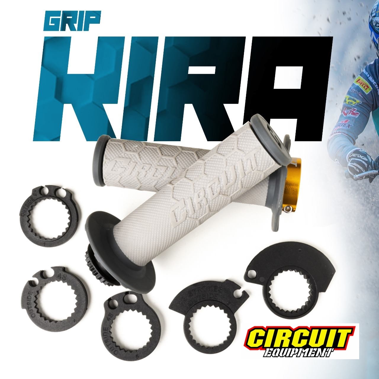 Smart, comfortable and elegant were the three important features to include in the design requirements of our new KIRA lock-on’ grip. The grip has a fixing method that doesn’t require glue or cable. The ‘grip’ and ‘tube’ are complete and assembled as ‘one part’ for easier and faster installation. They are suitable for most 2 and 4 strokes’ bikes and come complete with different throttle cable adaptors to suit most applications.